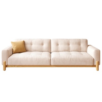 和風ハイエンドクリーム張り生地ウッドリビングルーム23人掛けリビングルームファブリックソファ